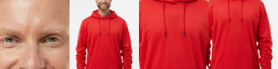 - 6.8-ounce, 90/10 poly/spandex fleece