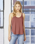 Bella+Canvas Women s 3.7 Ounce Flowy High Neck Tank. Angular, high neck. Back Seam. 65% polyester, 35% viscose. Relaxed drapey fit. Sideseamed. Spaghetti straps. Tear Away Label. 3.7 oz.
