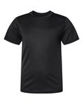 Badger Youth 3.5 Ounce B-Core Short Sleeve Performance T-Shirt. 3.5 ounce 100% polyester moisture management, antimicrobial performance fabric T-shirt. Heat seal logo on left sleeves, self-fabric collar, sport paneled shoulder for maximum movement. Double-needle hem. Athletic cut.