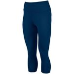 Augusta Ladies Hyperform Compression Capri. Wicks moisture. Ladies' fit. Tagless label. Low rise, wide flat waistband. Hidden possession pocket in waistband. Flatlock stitching. Heavyweight 88% polyester/12% spandex knit.