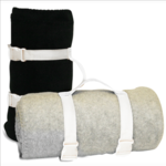 Alpine Fleece Blanket Strap. Nylon web handles. Each strap is 18 and t-strap that connects both straps is 4.75. Double buckle. Side release. Adjustable. Non-branded label/tag.