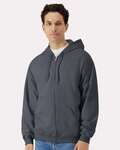 Gildan Adult 8.4 Ounce Softstyle Zip Hoodie. 80/20 ringspun cotton/polyester 8.4 ounce fabric. 2-piece color matched jersey fabric lined hood. Metal zipper with dropped shoulder and pouch pocket. 1x1 rib with spandex cuffs and bottom band for enhanced stretch and recovery. Classic fit, seamless body. High-performing black tear-away label; transitioning to recycled material.
