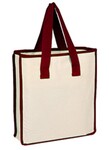 Private Label Heavy Canvas Zippered Shopping Tote With Color Handles. 100% Cotton Canvas Tote with self fabric handle and outside pocket. Gusset. 18"W x 14"H x 4-1/2"D. Ships from Stone Mountain, GA.
