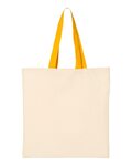 Private Label Promotional Tote Bag With Bottom Gusset. 100% Cotton Canvas, natural body with colored handles. Reinforced at stress points. 15"W x 15"H x 3"D. Ships from Stone Mountain, GA.